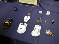 説明会で展示された実機の分解サンプルでは、本体およびドングルの通信用チップとしてSPARK Microsystems製「SR1020」の搭載が確認できた。またコントローラとしてはNXP製LPC55S28が搭載されている。メインのマウススイッチは特に謳われていないが、実機で確認したところRAESHAのロゴが入っており、光学式スイッチである可能性が高い。サイドボタンはKailh製のマイクロスイッチが使われていた。