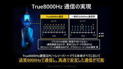 ポーリングレートが8,000Hzに向上したことにより、クリック応答速度は従来モデル(ポーリングレート1,000Hz)の約2.5msから約0.45msへと5倍以上の高速化を果たしている。