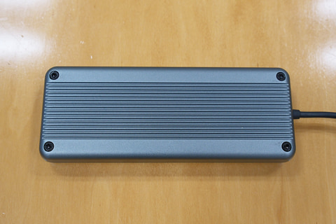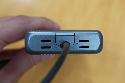 ケーブルは本体と一体型のものを採用。こちらもThunderbolt 5認証済みのもので、SSDの性能が十分引き出せるものを選定したという。ケーブルの取り違いや紛失も防いでいる。本体側のケーブルの根元付近には、転送中に点滅するLEDランプも備えており、動作状況を外から確認できる。