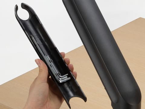 CR-LAC1406は、ガススプリング式の3関節モニターアーム。VESA 75×75mm/100×100mm対応。ケーブルをまとめられるケーブルホルダーを備えたほか、付属の六角レンチを本体ベース部に収納できる。