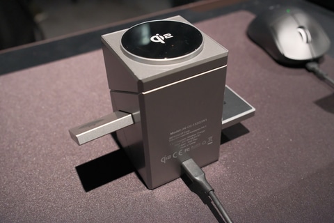 中央上部のQi2対応充電ポートに加え、左にAirPodsなどのイヤフォン用、右にApple Watch用の充電ポートを搭載。本体上部が電動で回転する設計になっており、Qi2ポート部分は手前に傾斜した状態、または水平な状態の2つで切り替えが可能。加えて、Qi2ポート自体も回転でき、充電中のスマートフォンの向きも調整もできる。