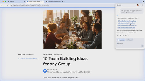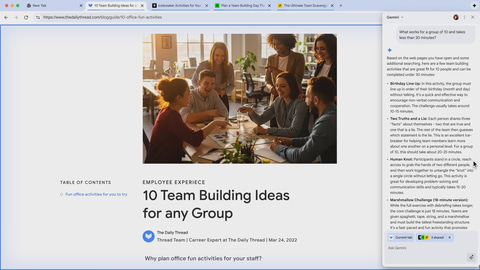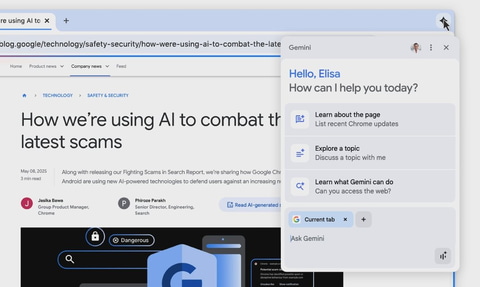 具体的には、米国地域かつ英語設定のMacおよびWindowsユーザー向けに、Gemini in Chromeを順次提供開始した。まずは閲覧中のWebページの情報をGeminiが分かりやすく教えてくれる機能から実装し、今後数週間中にはGoogle Workspaceの法人ユーザー向けに、近日中にはAndroid/iOS版Chromeにも提供予定。