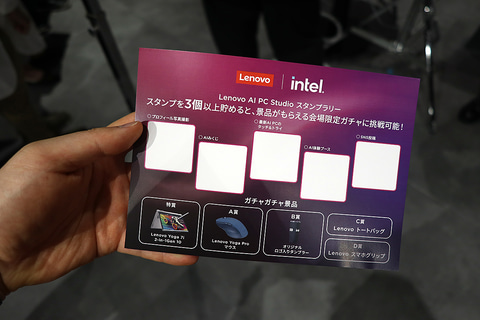会場は5つのコーナーに別れており、それぞれを体験するとスタンプラリーに参加できる。スタンプラリーを終えるとガチャに挑戦可能で、景品は「スマホグリップ」「トートバッグ」「オリジナルログ入りタンブラー」「Lenovo Yoga Pro マウス」、そして目玉がLenovo Yoga 7i 2-in-1 Gen 10だ。