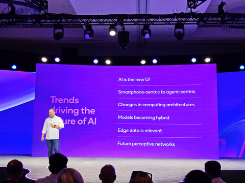 この中でアーモン氏は「これまではスマートフォンのようなデバイスが中心にあったが、AI時代にはAIエージェントが中心になってユーザー体験を規定していく」と述べ、AI時代にはエッジとクラウドのハイブリッドで実現されていくAIエージェントこそが重要になり、人間とAIエージェントのインターフェイスとしてスマートフォンやPC、自動車などが位置する形になっていくと予測した。