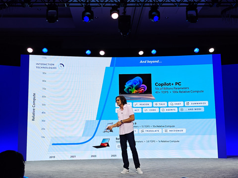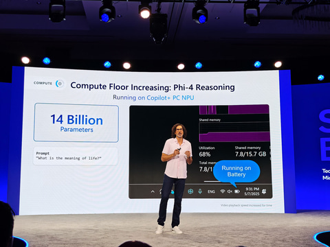 後半にはMicrosoftで技術フェロー兼執行役員Windows/デバイス担当を務めるスティーブン・バッチェ氏が登壇し、MicrosoftのCopilot+ PC戦略や、クラウドとエッジのハイブリッドAIに関する戦略などを説明した。
