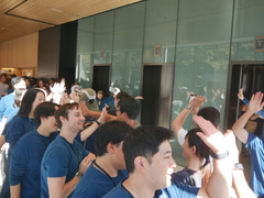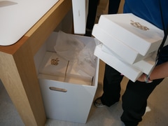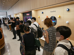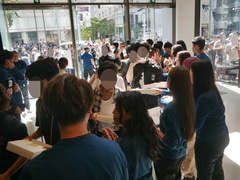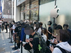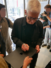 9月26日午前10時、グランドリニューアルオープンしたApple銀座 この時点で最後尾の人が入店できるのは午前11時30分以降と告知されていた 開店10分前になると100人を超えるApple銀座のスタッフが登場し、並んでいた来店客たちとハイタッチで盛り上げる Apple銀座のスタッフは、2階からも並んでいる様子を確認 午前10時のオープンにあわせて、Appleのティム・クックCEOが登場。ポルテージは最高潮に クックCEO自らがApple銀座の扉を開き、いよいよオープン 店内ではユーザーの要望に応えて、マックにサインするシーンも 3階フロアではApple 銀座だけのApple Gift Cardスペシャルエディションを購入する人の列が続いていた Apple 銀座だけのApple Gift Cardスペシャルエディション
