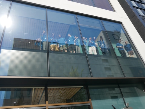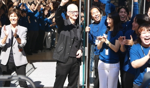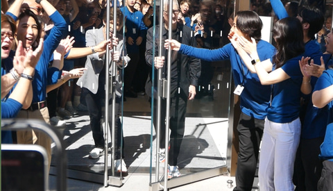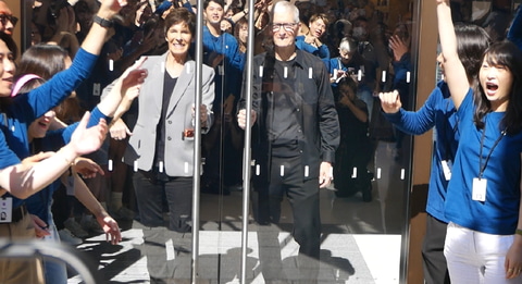 オープン時には、Appleのティム・クックCEOが登場。大きな歓声の中、クックCEO自らがドアを開け、並んでいた来店客をハイタッチで招き入れた。