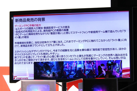 FREX∀Rは「異次元の楽しさ、無限の可能性。」をコンセプトに掲げるゲーミングPCブランド。昨今のeSports人口増加や生成AIの普及などによるゲーミングPC需要の高まりを受け、これまでゲーミングPCに触れてこなかったライトユーザーが手を出しやすいブランドとして展開する。