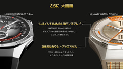 HUAWEI WATCH GT 6 Proの主な仕様は、ディスプレイが1.47型、レンズ素材がサファイアガラス、ケースがチタニウム、防水が5ATM/IP69。