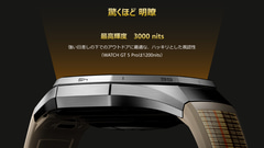 上位のHUAWEI WATCH GT 6 Proだけの特徴として、1.47型のAMOLEDディスプレイを搭載し、従来の「HUAWEI WATCH GT 5 Pro」からディスプレイ占有率が5.5%向上。最高輝度も1,200cd/平方mから3,000cd/平方mに向上している。表面には割れにくく傷がつきにくいサファイアガラス、フレームには航空機でも使用されているチタン合金、背面には肌に馴染むセラミッククリアケースの採用が謳われている。