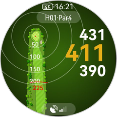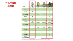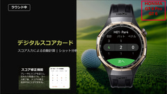 ゴルフ関連の機能としては、Proの機能を中心に強化が図られ、無段階拡縮操作による三点間距離計測機能とハザード全景と距離表示機能、グリーンの傾斜および方向表示機能などを搭載した。さらに、ProのHONMAコラボモデルでは、ハイエンドモデルのみに搭載されていた高低差補正機能を搭載。また、クラブやショットの提案や、一打前の飛距離表示を行なう機能も備える。