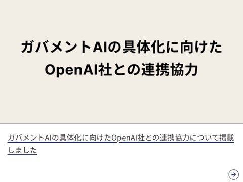 また、デジタル庁とOpenAIは、行政の業務効率化や公務員の働き方改革を推進するため、行政機関向けの生成AIアプリケーションの開発と、その利用実証における協力の可能性を検討することで合意した。