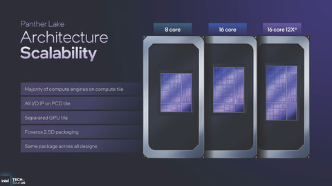 Panther Lakeは、1つのパッケージで、Lunar Lakeが対応してきたモバイル向けノートPCの市場、Arrow Lakeが対応してきた薄型ゲーミングノートPC、ハイエンドノートPCの市場などを1つでカバーすることができるようになる。このため、ノートPCメーカーにとっては1つの設計という低コストで、ローエンドからハイエンドまでをカバーすることができる。