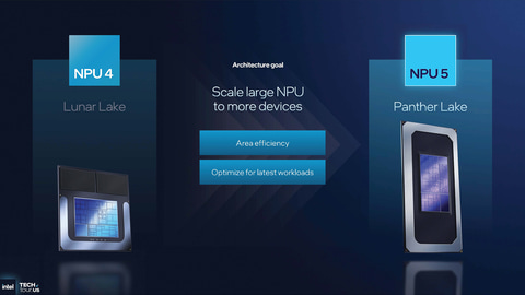 なお、Meteor LakeやArrow Lake世代では、第3世代NPUはTSMC N6(6nm)で製造されるSoCダイに置かれていたが、今回の第5世代NPUは、CPUと同じコンピュートタイルに置かれており、Intelの最新プロセスノードになるIntel 18Aで製造される。そうしたCPU用の最新ノードで製造されることも、電力効率の改善に大きな効果を与えていると考えられるし、Panther Lakeのすべての構成でCopilot+ PCの要件を満たすことになる。