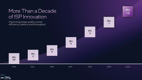 今回IntelはLunar Lakeで導入したISP(Image Signal Processor、IntelではISPのことをIPU=Image Processing Unitと呼んでいる)となるIPU7のマイナーバージョンアップを行なっている。