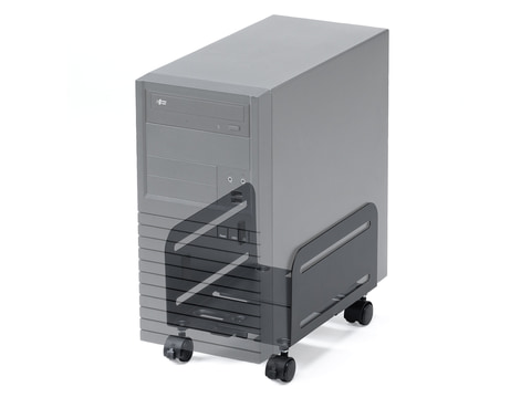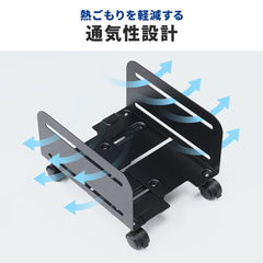 100-CPU006は横幅を調整可能なPCワゴン。デスクトップPCを載せることで、床面から浮かせてホコリの吸い込みや熱暴走を防止する。