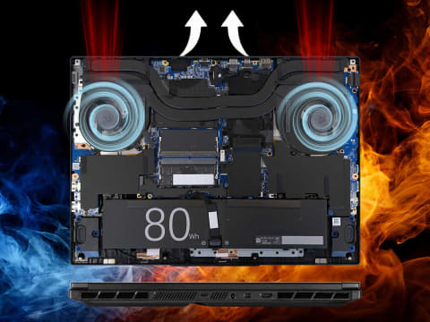 CPUとGPU以外の標準仕様は共通。ディスプレイは180Hz駆動でWQXGA(2,560×1,600ドット)の非光沢液晶パネルで、メモリは16GB、ストレージは500GB M.2 NVMe SSD。バッテリ容量は80Whで稼働時間の目安は約5時間。