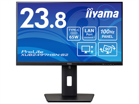 ProLite XUB2497HSN-B2は、IPS方式パネルを採用した23.8型フルHD液晶モニター。入力端子としてDisplayPort Alt Mode/USB PD対応のUSB Type-Cを搭載し、ケーブル1本で65W給電、音声/映像出力に対応する。USBドックとしても機能し、USB 3.2 Gen 1 3基、USB 3.2 Gen 1 Type-C 1基、Gigabit Ethernetを備える。
