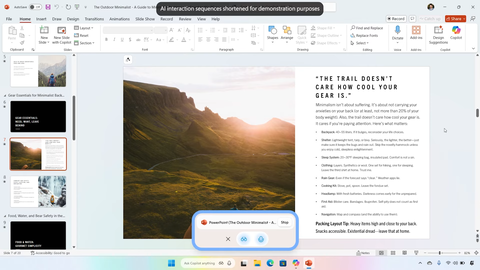 Word、Excel、PowerPointファイルを共有した場合には、画面に表示されていない部分も含めて文書全体を認識できる。そのため、スライド枚数の多いプレゼンテーションであっても、1枚ずつ見せることなく全体をCopilotに分析してもらえる。