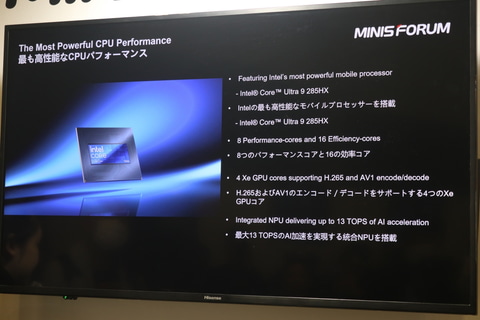 MINISFORUMは10月22日、千葉・幕張メッセで開催中の大型展示会Japan IT Week 秋 2025に出展し、新製品発表会を開催。この中で既にリリースされているRyzen AI Max+ 395搭載の「MS-S1 MAX」に加え、Core Ultra 9 285Hを搭載したミニワークステーション「MS-02 Ultra」を発表した。ちなみに発売時期や価格は未定だが、早ければ11月中にも正式リリースされそうだ。