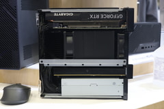 極めつけは350WのFlex電源ユニットを内蔵している点。外付けのACアダプタが不要なので、設置スペースを最小化できる。なお、本体は手回しネジによりツールレスで開けられる構造となっており、パーツの増設やメンテナンスもきわめて容易だ。