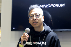続いてシニアプロダクトディレクターの靳(きん)輝(Michael Jin)氏が登壇し、MINISFORUMの企業概要や販売協力パートナーであるリンクスインターナショナルを紹介した。今はリンクスインターナショナルが販売に尽力していることもあり、家電量販店など、実店舗でもMINISFORUM製品を見かけることが多くなってきたという。