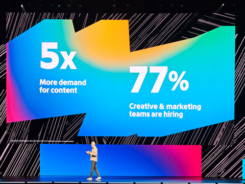 次いで登壇したAdobe デジタルメディア事業部門代表 デイビッド・ワドワーニ氏は「デジタルコンテンツへの需要は高まり続けており需要は5倍に、さらにデジタルコンテンツを作りマーケティングするチームの雇用は77%増している」と述べ、デジタルコンテンツそのものへの需要も、そしてそれを制作するクリエイターへの需要も上がり続けていることを指摘した。