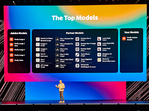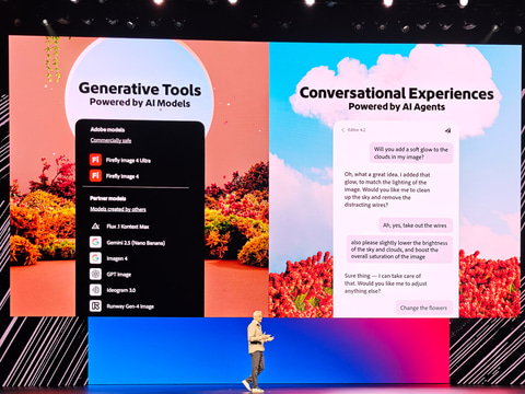 今回Adobeは、Adobe MAXの基調講演を3時間近くという近年にはなかった長時間の講演を行ない、その大部分をAIモデルの戦略やFireflyの説明、さらにはエージェント型AIなどのAI関連に多くの時間を割いた。