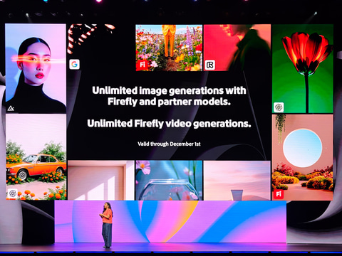 また、AdobeのFireflyでは、サブスクリプションの料金(年額/月額)と生成クレジットと呼ばれる、生成AIのサービスを利用するたびに減っていくクレジットの2本立ての料金プランになっている。しかし、12月1日までは、イメージ生成と動画生成は無制限で行なえることをAdobeは明らかにした。また、Adobe MAXの参加者にはFireflyを3カ月無償で試せるバウチャーが送られており、Adobeは、その多くがCreative Cloudのユーザーだと考えられるAdobe MAXの参加者にFireflyを試して見て欲しいと考えていることがうかがえた。