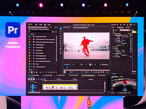 Premiereに関しては、マスク機能が強化されている。Adobeによればマスク機能は完全に新設計になっており、たとえば顔のマスクなどを動画の動きに追従してかけることが可能になっており、従来のように1フレーム、1フレームかけるという作業を行なっていたのに比べて圧倒的に生産性が高まっている。