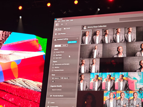 Lightroomに関しては新しい「アシスト選別」(Assisted Culling)が提供開始される。このアシスト選別は、AIが多くの写真の中からよりよい写真を選ぶのをアシストしてくれる機能。たとえば、目が開いている写真を選ぶなどの重み付けを行なって、それに応じた写真をAIが自動で選んでくれること、さらにはレンズについた汚れをAIが検出して消してくれる機能が大きなアップデートとなる。