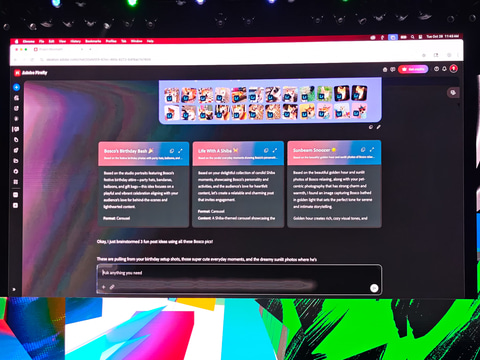 ワドワーニ氏はもう1つのトレンドとして指摘した「会話型ユーザー体験」に関しては、Adobeが今回のAdobe MAXで発表したExpressとPhotoshop Web版に搭載されたエージェント型AIのAIアシスタントに関して説明した。