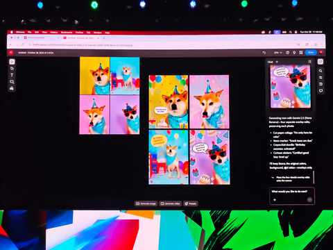 こうしたAIアシスタントは、ChatGPTのようなチャットボットがユーザーと対話しながらExpressやPhotoshopを操作するのを助ける機能になる。デモではPhotoshopやExpressでAIアシスタントと会話しながら、どのような処理をすべきかなどをAIが教えてくれ、それを元にPhotoshop Web版などの操作が行なわれた。