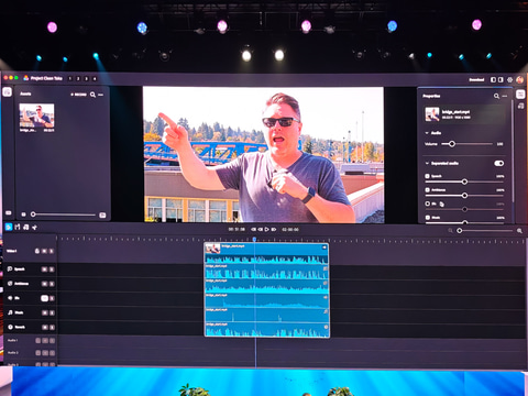 そうした時に、Project Clean Takeを使うと、AIが発音ミスの修正、声の分離、ソース分離技術を利用したノイズ除去、ライセンスを得ていないバックグランドミュージックの削除、話し方の改善(声の感情を変える)などを数秒でやってくれる。ポッドキャスト、映画制作者、放送用の番組作成といったスタジオ品質の音声を必要とする動画編集者にとって強力なツールになる。