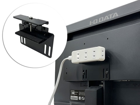 クランプ式を採用し、幅が32~52mmの電源タップを固定できる。モニター裏の上下左右、水平垂直に取り付けが可能。