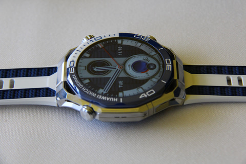 ディスプレイには466×466ドット表示対応の約1.5型LTPO AMOLEDを搭載し、サファイアガラスで保護されている。輝度はファーウェイ史上最高という最大3,500cd/平方mで、明るい屋外での視認性を確保した。