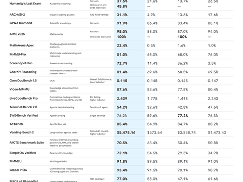また、「Gemini 3 Deep Think」と呼ばれるモードも搭載し、Humanity's Last Examで41%(ツール不使用)、GPQA Diamondで93.8%という、さらに高いスコアを実現。「ARC-AGI」(コード実行あり)では45.1%を達成し、ほかのモデルを大きく凌駕する。Gemini 3 Deep Thinkは今後数週間以内に、Google AI Ultraのサブスクリプションユーザーを対象に提供開始する予定。