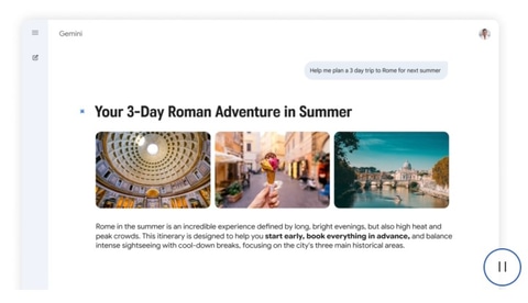 たとえば、画像、表、枠組み(グリッド)といった視覚的要素を含む応答を構築。さらに、インタラクティブな仕組みが役立つと判断された場合、生成能力を使って、専門のシミュレーションやツールを即座にコーディングし、応答に組み込んで表示するようになる。