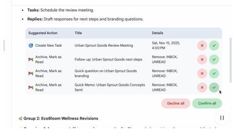 さらに、複雑な手順を踏む必要があるタスクを、Gemini内で直接処理する実験的な機能「Gemini Agent」も実装。米国より提供開始しているが、日本での導入は未定。