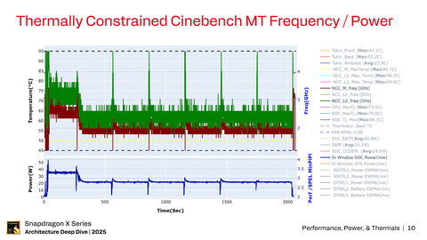 一般的に、ターボモード時の電力限界(Power Limit)はPL2、規定の動作クロックでの電力限界はPL1と呼ばれているが、今回のSnapdragon X2シリーズでは、このようなPL1、PL2に加えて、システムレベル(システム全体)でのPL1、PL2として「SYS PL1」「SYS PL2」、SoC全体でのPL1、PL2として「SOC PL1」「SOC PL2」といった新しいパラメータを定義して、ノートPCメーカーがより熱設計をしやすいように配慮している。