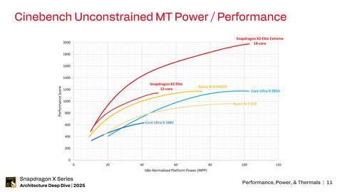 この中でQualcommは、Snapdragon X2 Eliteの熱設計やレファレンスデザインに関する情報、さらには9月のSnapdragon Summitでは公開されていなかったSnapdragon X2 Eliteの下位2モデル(X2E-88-100、X2E-80-100)のベンチマークデータなどを公開した。
