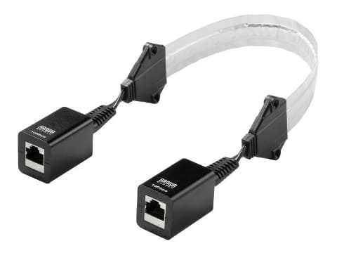 KB-FL6ASTP-EXは、両端にRJ-45メスコネクタを備えた延長LANケーブル。CAT.6A対応のストレートケーブルで厚みは2.2mm。ケーブル部分はアルミテープによって保護しており、窓やドアの隙間に設置可能。