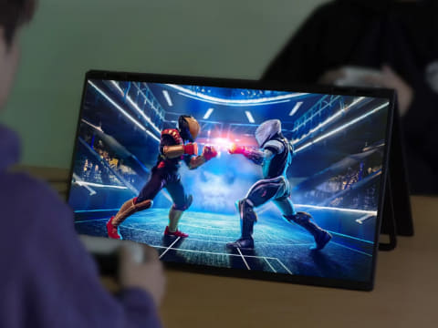 23.8インチ上下2画面拡張デュアルモニター 2Kは、最大180HzのWQHD(2,560×1,440ドット)非光沢液晶パネルを2台連結した構成のモニター。中央のヒンジは最大270度まで無段階の調整が行なえる。また、各画面を個別のモニターとして拡張する「マルチディスプレイモード」、1つの画面として使う「フルスクリーンモード」、全画面に同じ映像を表示する「ミラーモード」などが利用できる。