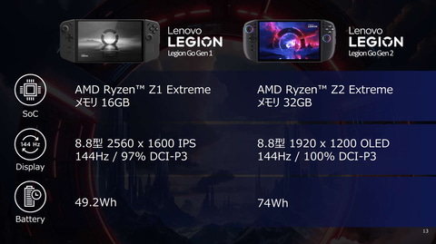 Legion Go Gen 2は、着脱式コントローラを採用する8.8型ハンドヘルドゲーミングPC。2023年12月に発売された「Legion Go」の後継機に当たり、各種イベントで予告されていた「Legion Go(8.8",2)」の国内販売版となる。