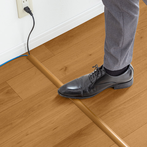 フローリングになじむ木目調の床用ケーブルモール、サンワサプライから