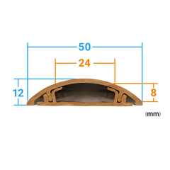 強度の高いPVC素材を使用しており、人や台車が頻繁に通る場所でもケーブルを保護できる。緩やかなラウンド形状を採用しているため、モール自体へのつまずきも起きにくい。また、ケーブルをスムーズに収納できるガイドを備える。