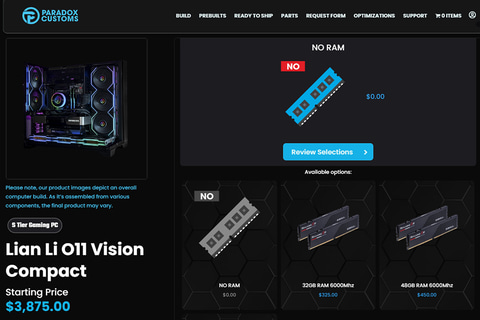 Due to ongoing RAM shortages and the price of ram skyrocketing, we are now providing the option to select no ram in the build section of our website!