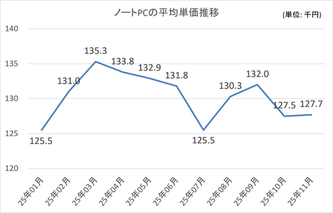冒頭にも触れたように、2025年11月の実績は、10月14日のWindows 10のサポート終了にともなう特需の反動減が影響している。