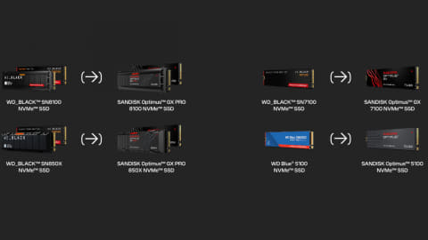 なお型番については「WD_BLACK SN 8100 NVMe SSD」を「SANDISK Optimus GX PRO 8100 NVMe SSD」のような形で数字部分を新ブランド名でも据え置く。
