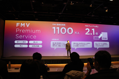 富士通クライアントコンピューティング(FCCL)は1月13日、都内でFMVの2026春モデル発表会を開催した。FCCL代表取締役社長の大隈健史氏らが登壇し、ブランドリニューアル2年目のビジョンとして「人に寄り添うAI」を提示。AIサービスへの心理的/技術的ハードルを下げる新サブスクリプションサービス「FMV AI Plus+」や、Snapdragon Xプロセッサを搭載し長時間駆動を実現したモバイルノートPCなどを発表した。